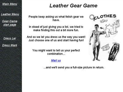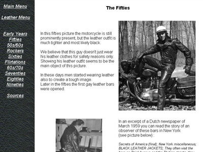 The internet developed fast and so did our website. The 1997-1998 version was much more elaborate. We introduced some features that can still be seen today, like the "Leather Gear game" and the "Gay Leather Fetish History". That history was introduced because we were disappointed you couldn't find anything about the gay leather history on the internet in those days. It has been a huge succes from the start.