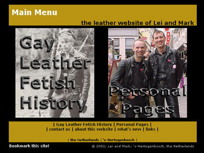 Since 1998 we have had a number of 'make-overs' for our website. It became slightly less personal for privacy reasons in a changing world and some new features like a guestbook were introduced to make it more interactive. In 2002 it became a two part website when we divided it into a "Personal" and a "Gay Leather Fetish History" part.
